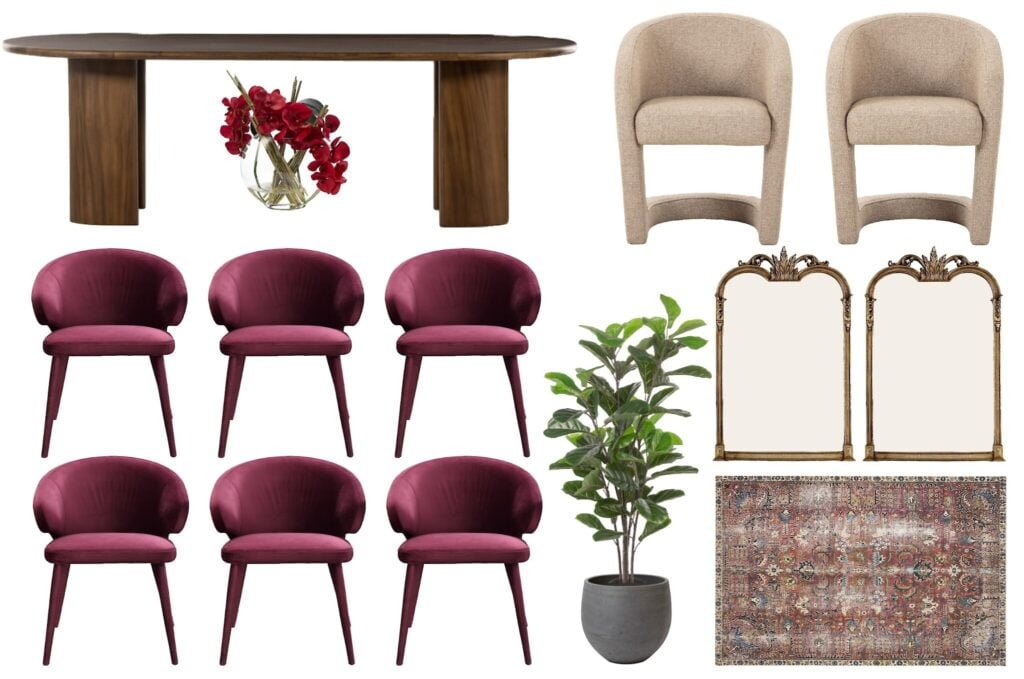 Purple Elegance Dining RoomProject Details:Service: Single Room DesignStyle: Mid-Century Modern, Contemporary, TraditionalStyled Room: Dining RoomEstimated Furniture and Decor Investment: $17,000(Excludes shipping/delivery and taxes)No time for DIY? No problem.Our full-service interior styling is the solution.Let us handle the details while you focus on what matters most.view our servicesBook your complimentary call
